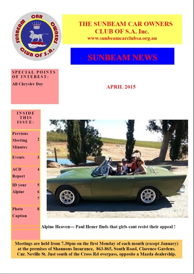 A member of the Rootes Group Auto Club of South Australia Inc.