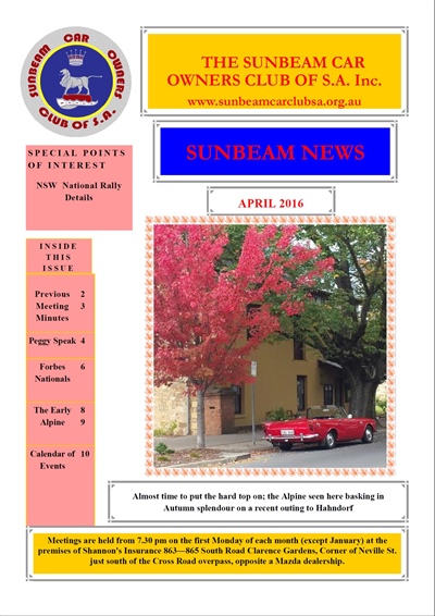 SUNBEAM CAR OWNERS REGISTER OF SOUTH AUSTRALIA