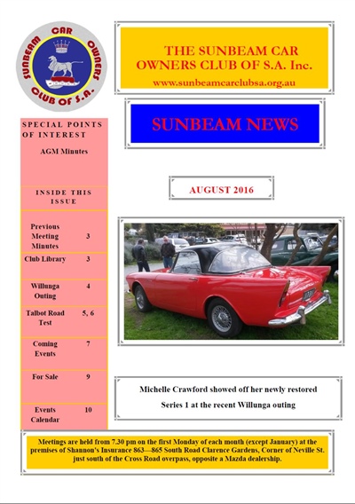 SUNBEAM CAR OWNERS REGISTER OF SOUTH AUSTRALIA