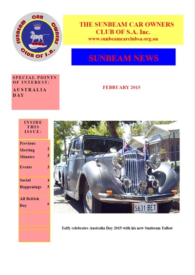 SUNBEAM CAR OWNERS REGISTER OF SOUTH AUSTRALIA