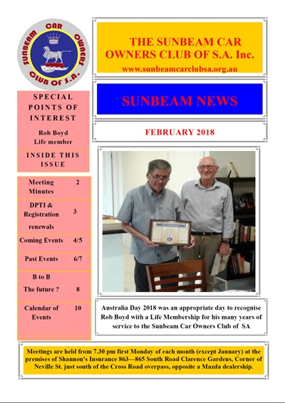 SUNBEAM CAR OWNERS REGISTER OF SOUTH AUSTRALIA