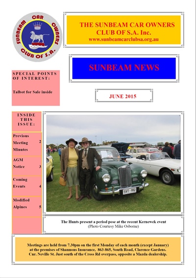 SUNBEAM CAR OWNERS REGISTER OF SOUTH AUSTRALIA
