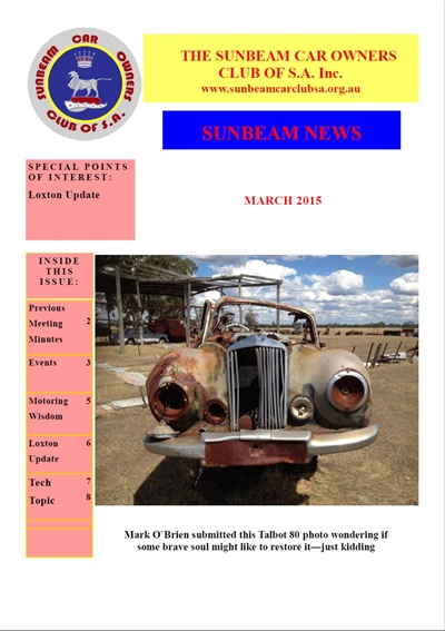 SUNBEAM CAR OWNERS REGISTER OF SOUTH AUSTRALIA