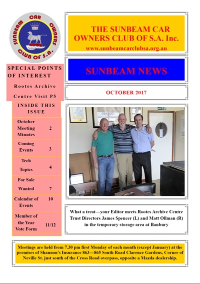 SUNBEAM CAR OWNERS REGISTER OF SOUTH AUSTRALIA