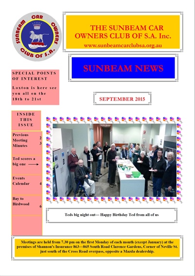 SUNBEAM CAR OWNERS REGISTER OF SOUTH AUSTRALIA