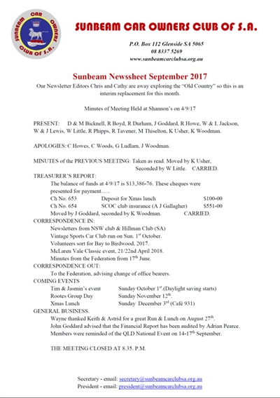 A member of the Rootes Group Auto Club of South Australia Inc.
